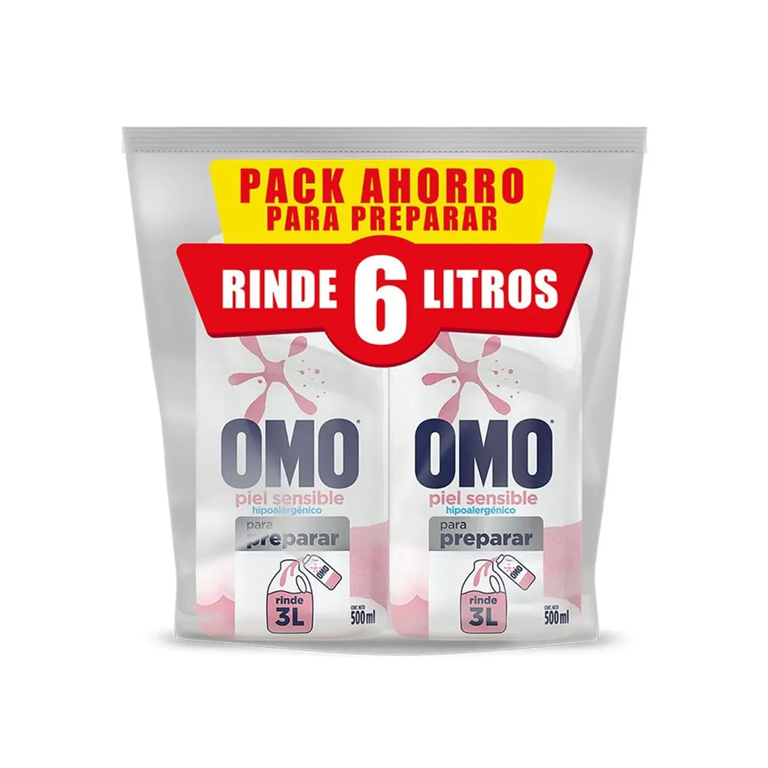 Pack Detergente Líquido Omo para Diluir Piel Sensible 2 x 500 ml
